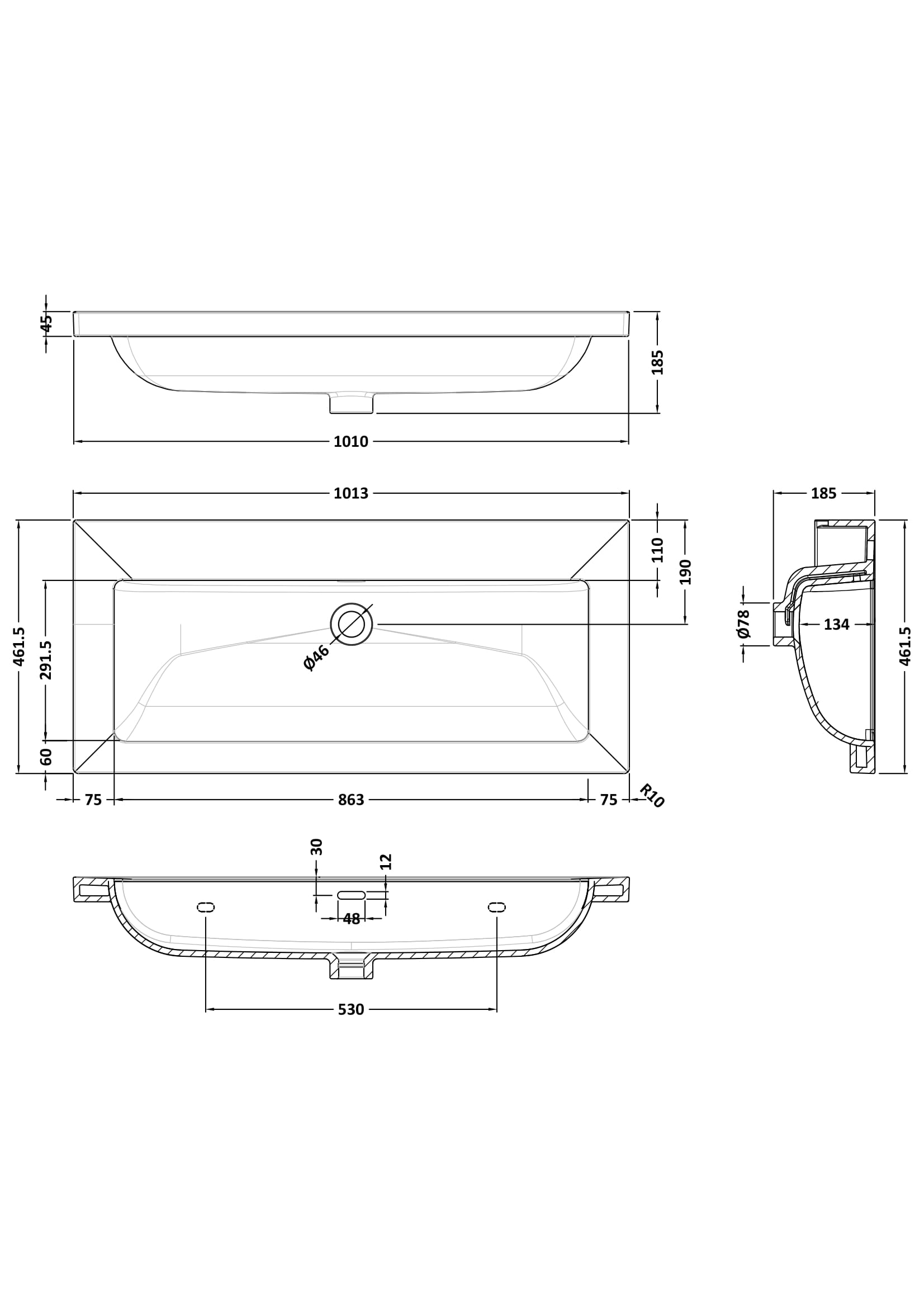 0 Tap Hole Minimalist Basin - 1010 x 460