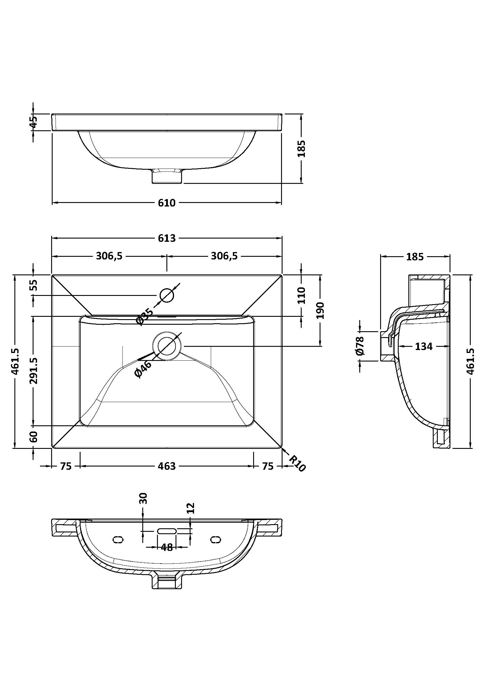 1 Tap Hole Minimalist Basin - 600mm x 460mm