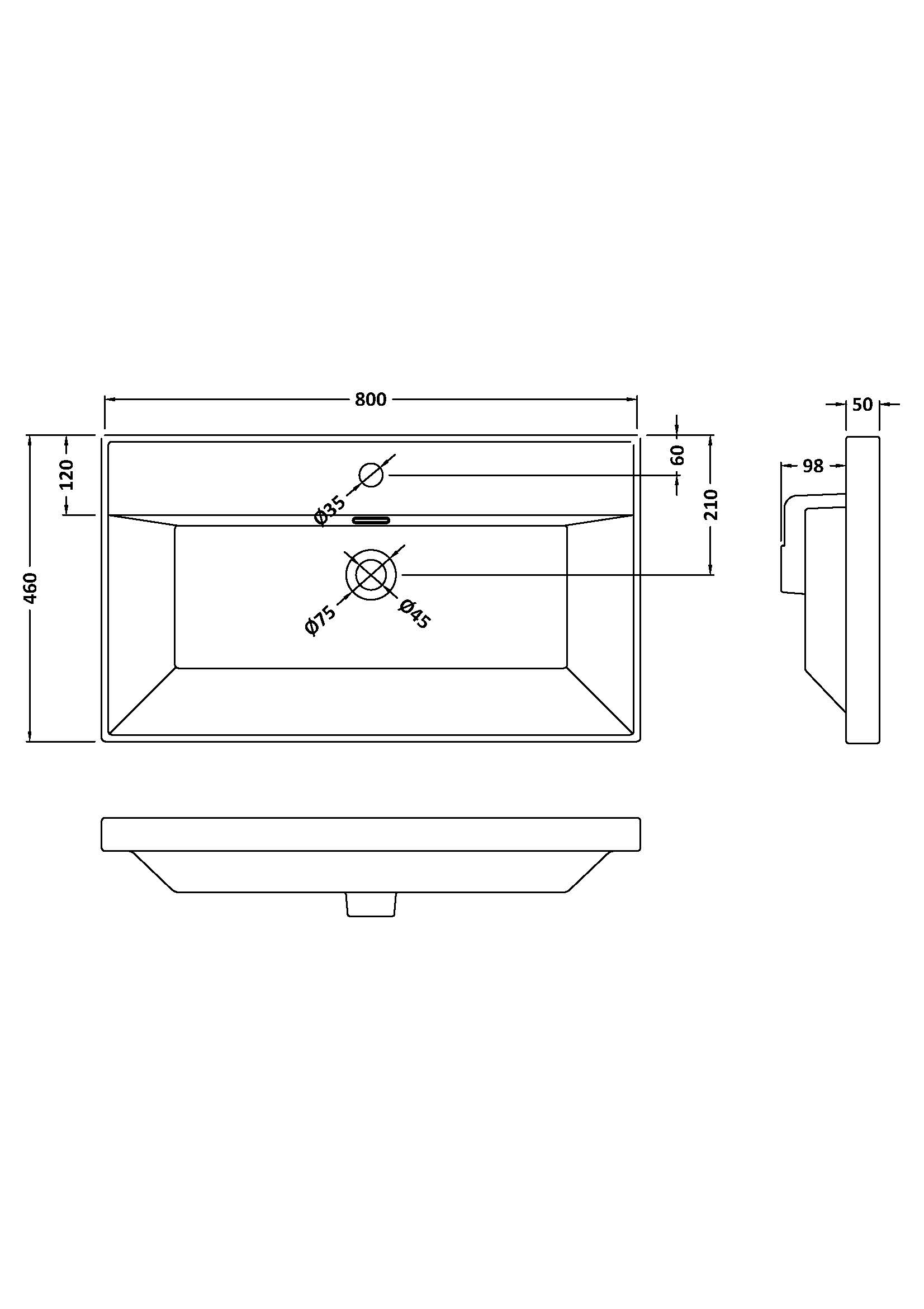 1 Tap Hole Minimalist Basin - 800 x 460mm