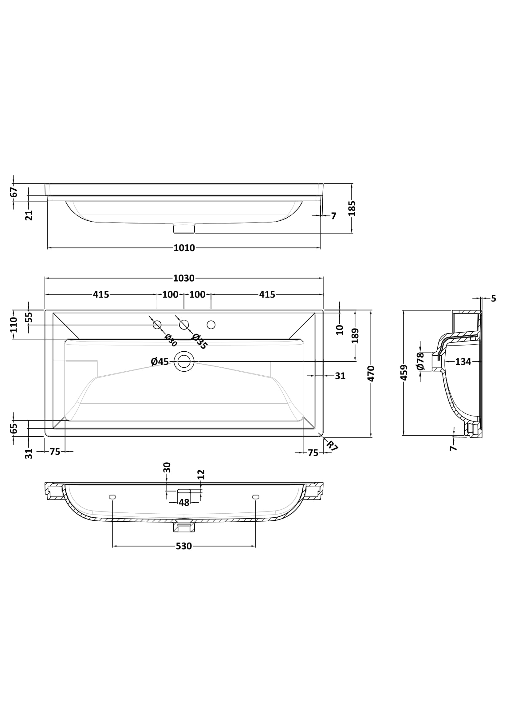 1000mm Classic Fireclay Basin - 3 Tap Hole