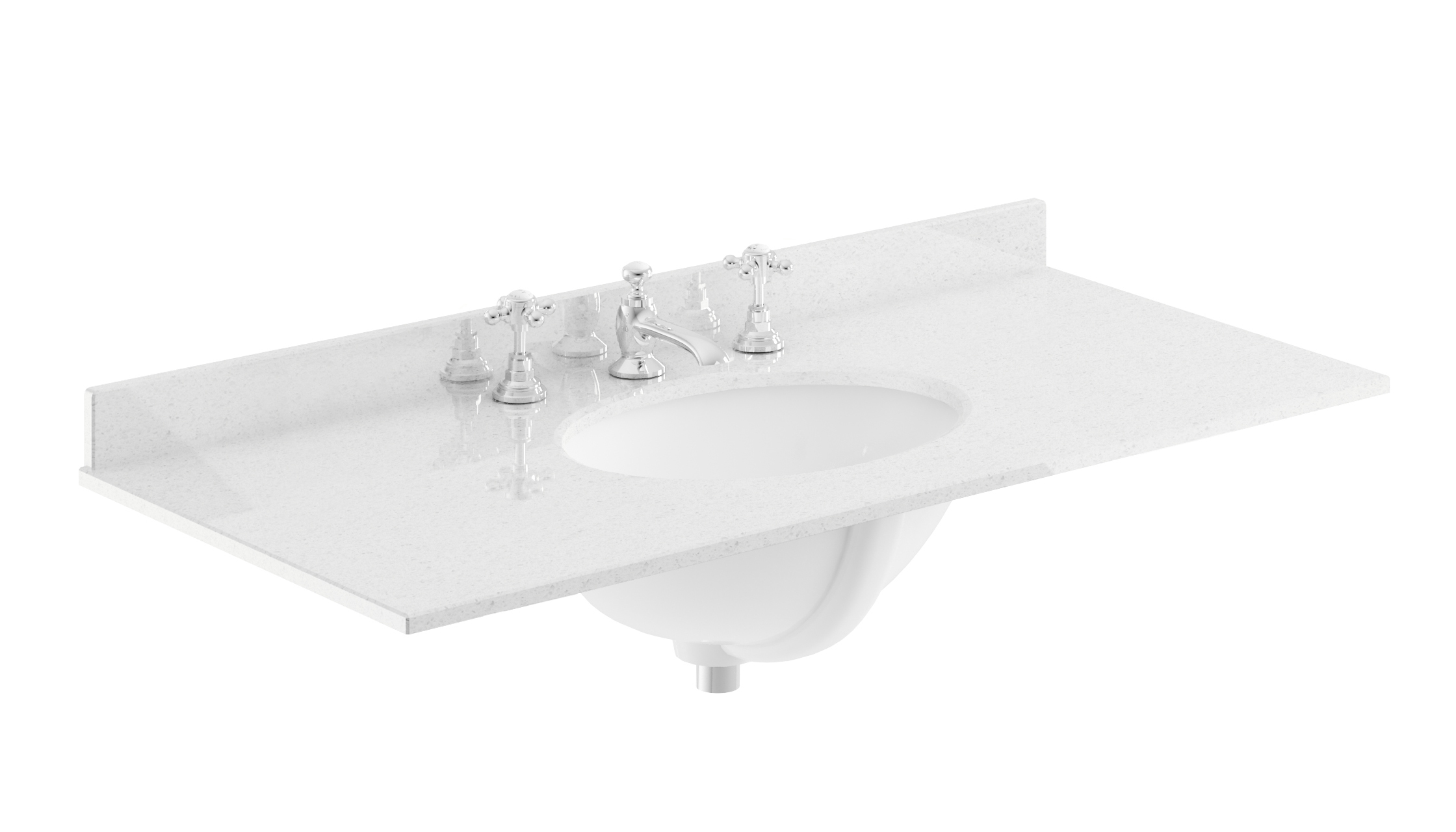 Old London 1000mm Rectangle Marble Top/Basin - 3 Tap Hole - White