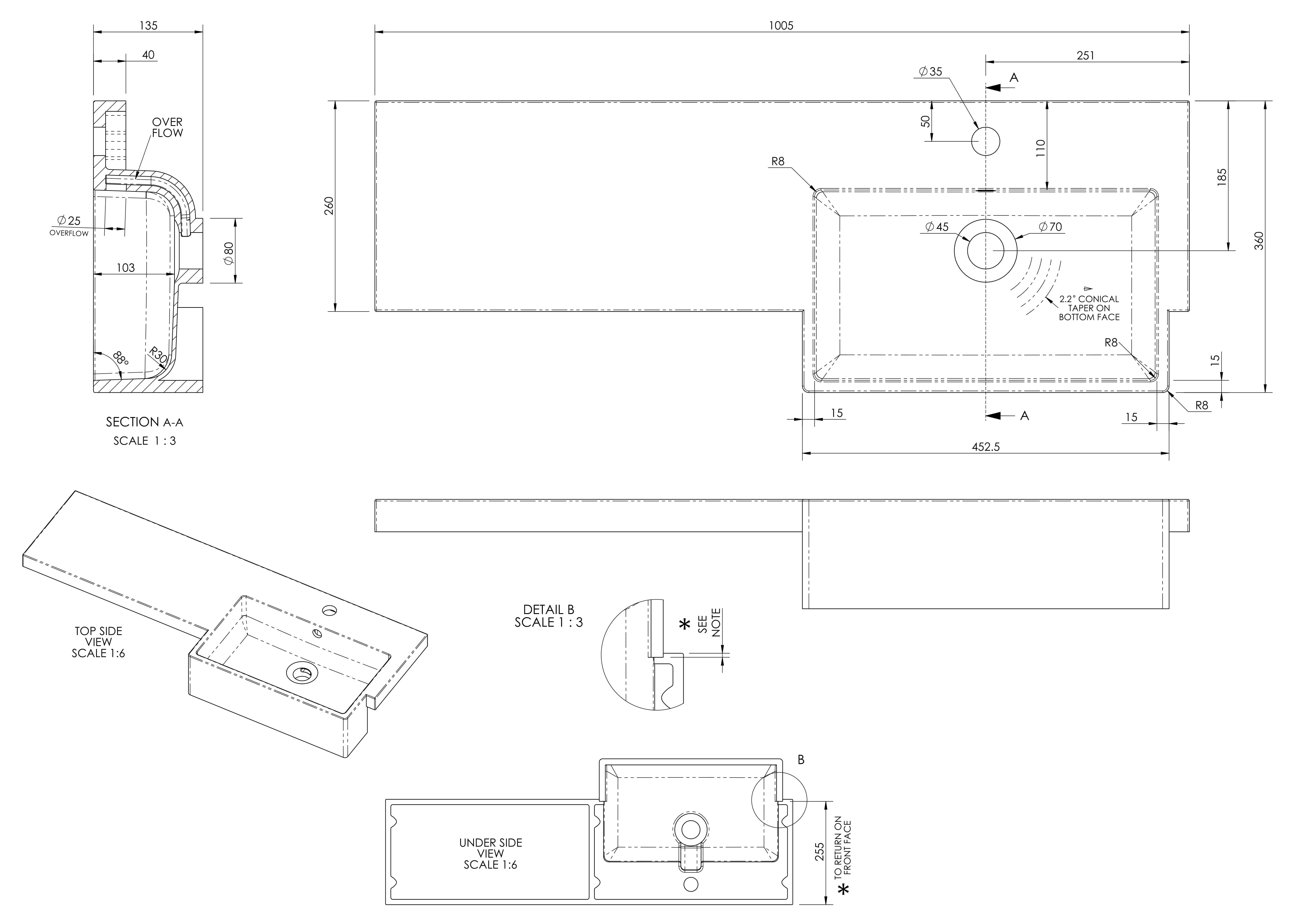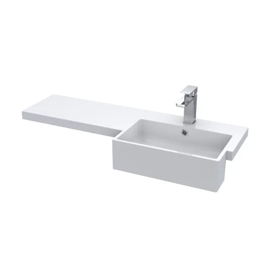 1000mm Square Semi-recessed Polymarble Basin - Right Hand