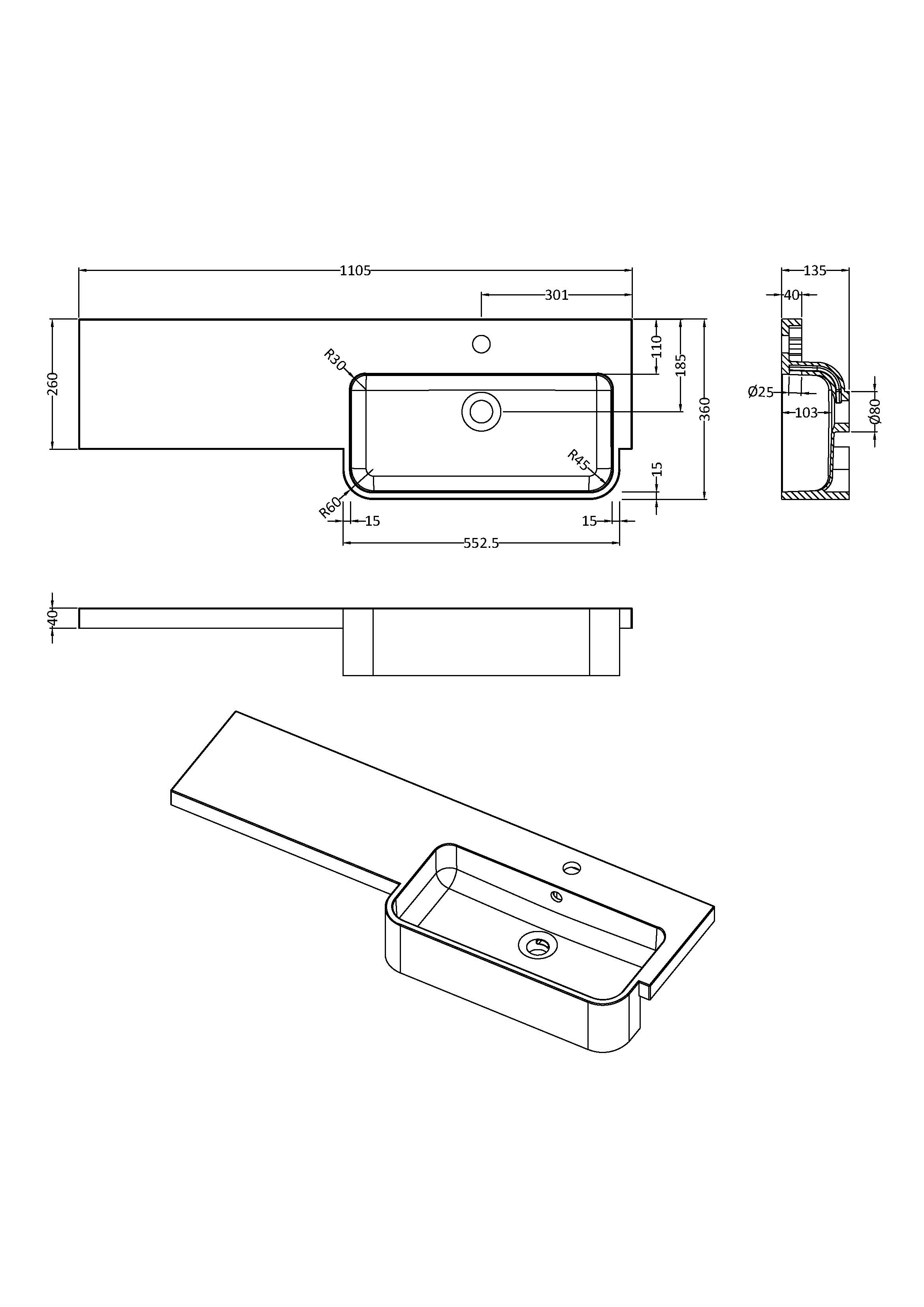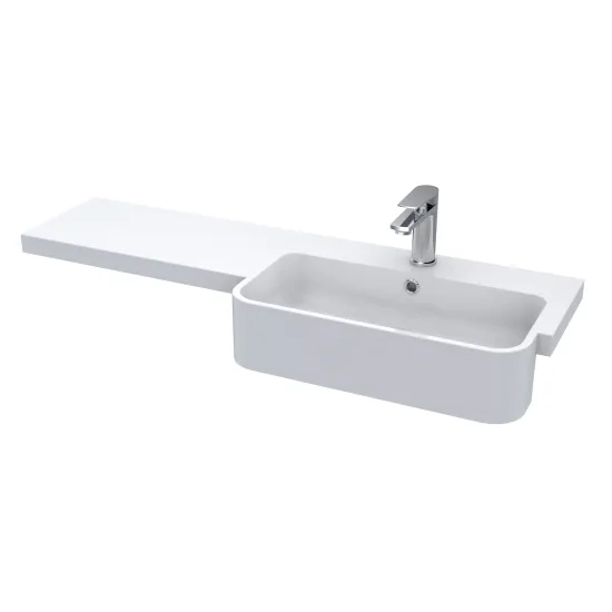 1100mm Round Semi-recessed Polymarble Basin - Right Hand