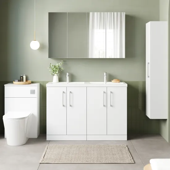 nuie Deco 1200mm Double Polymarble Mid-Edge Basin - White