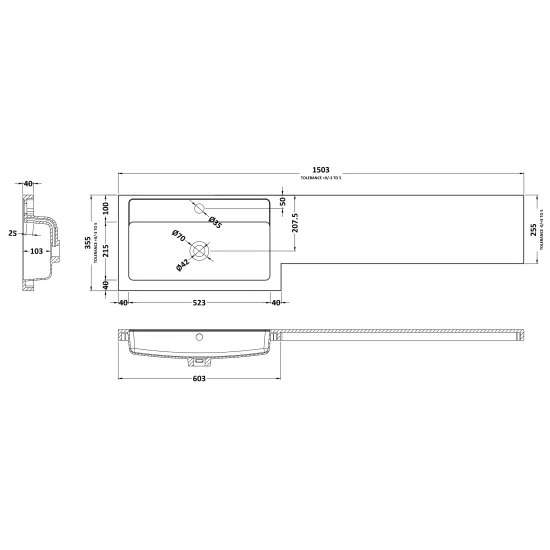 Nuie Lux 1500mm L Shaped Polymarble Basin - Left Hand - White