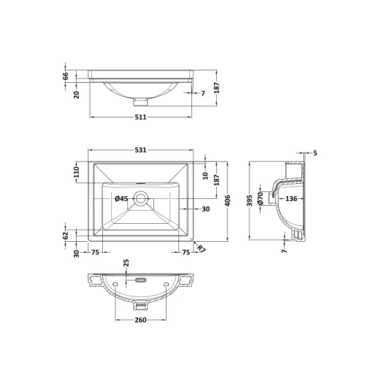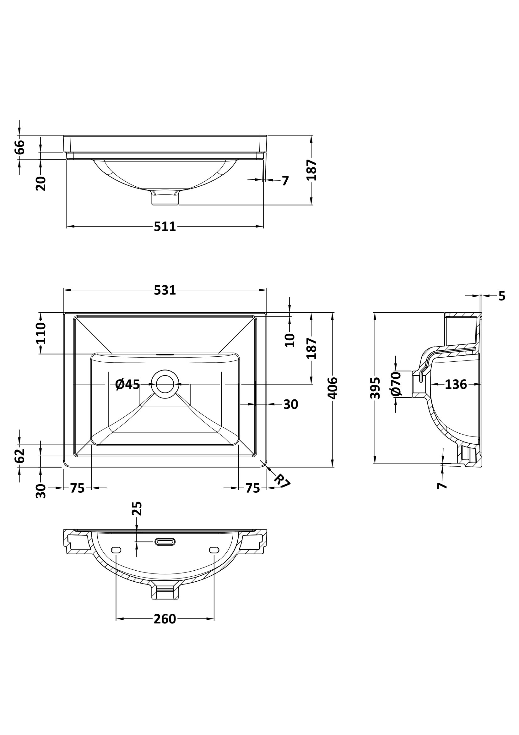 BC Designs 500mm Fireclay Basin - 0 Tap Hole