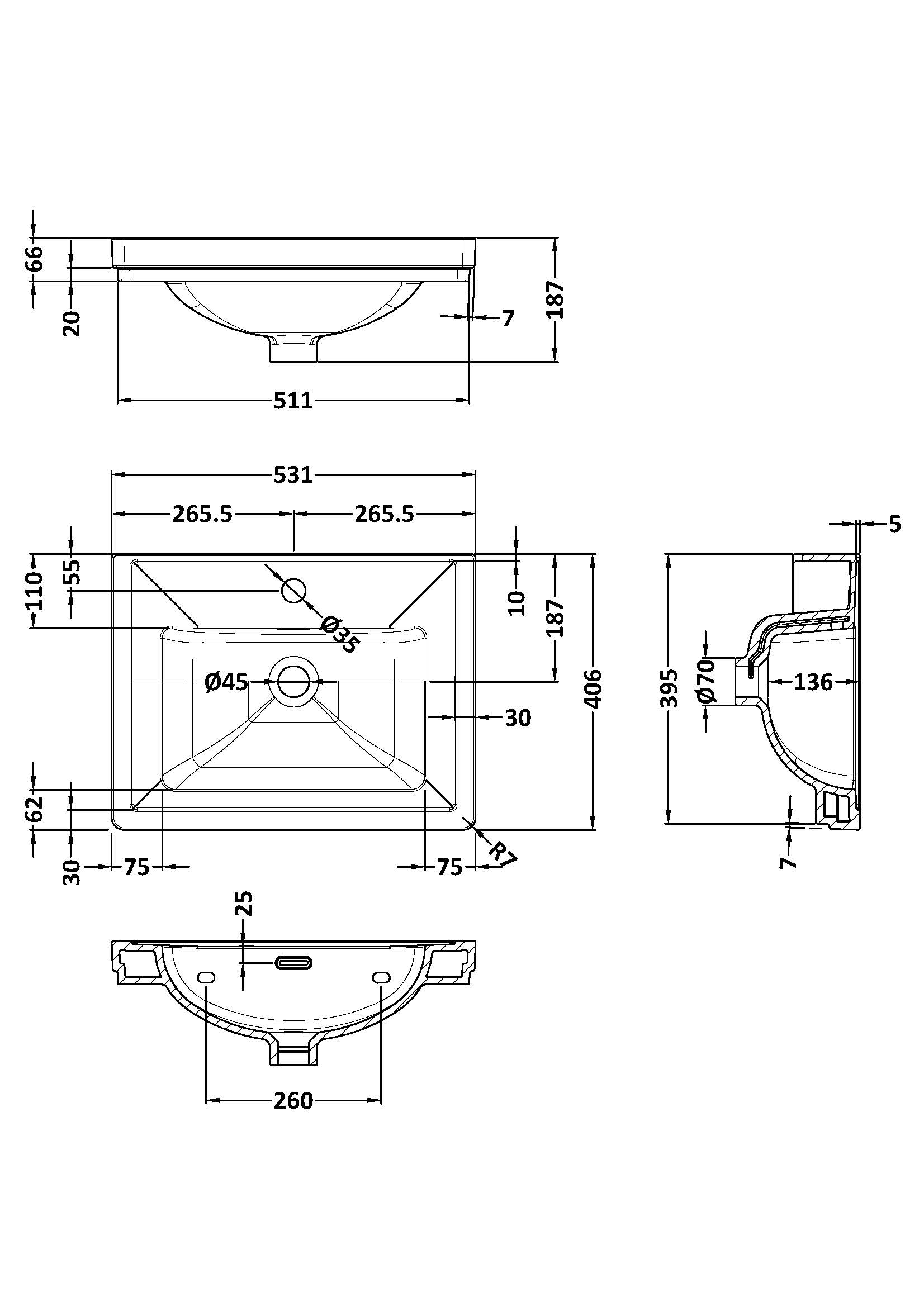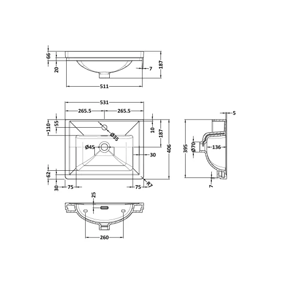 BC Designs 500mm Fireclay Basin - 1 Tap Hole