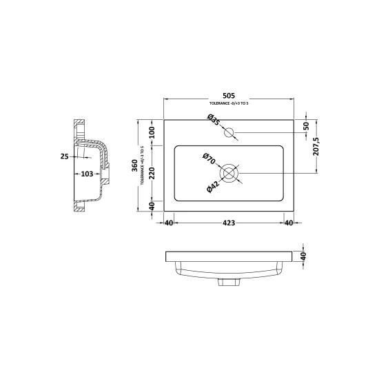 Nuie Lux 500mm Rear Tap Basin - 1 Tap Hole - White
