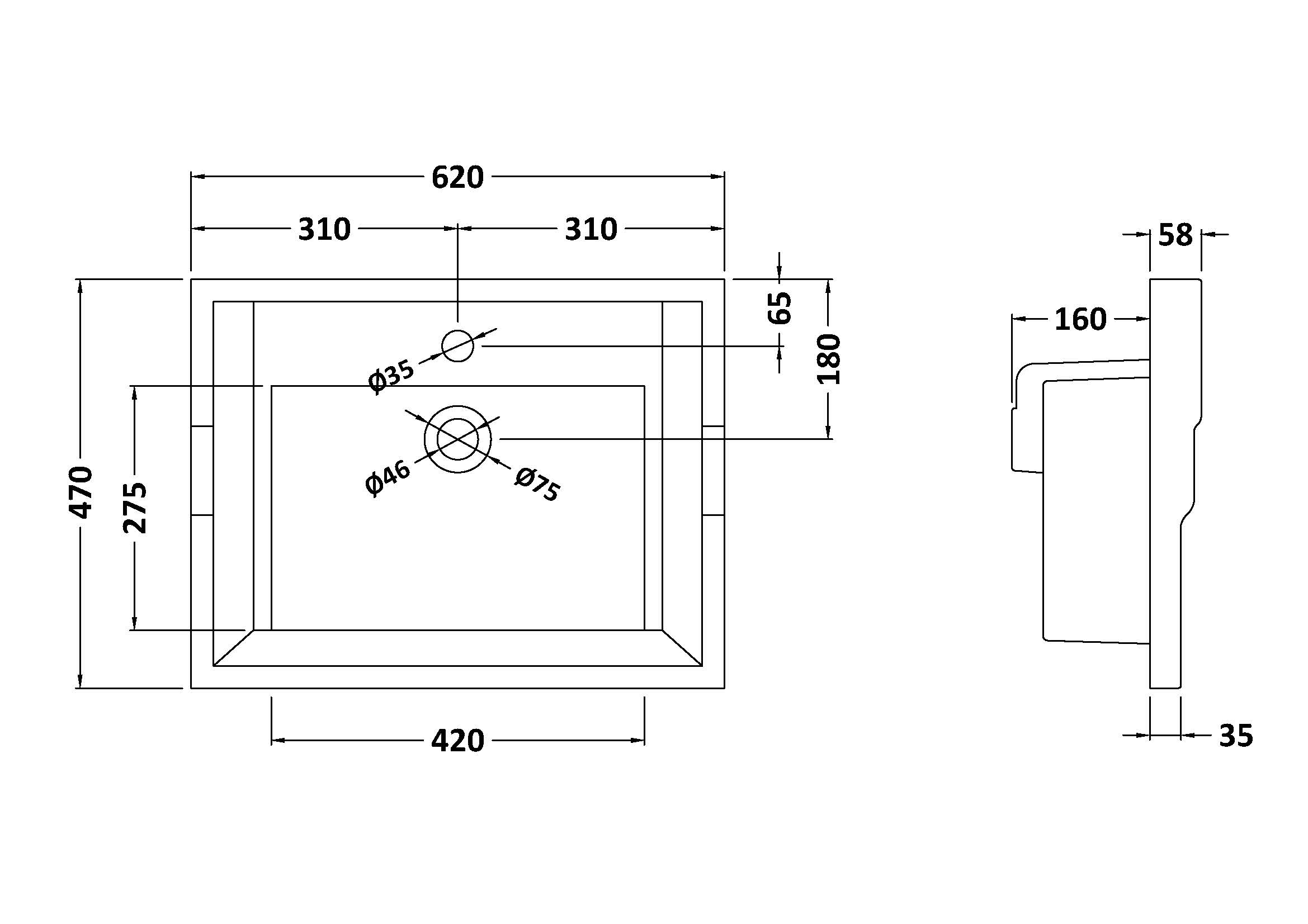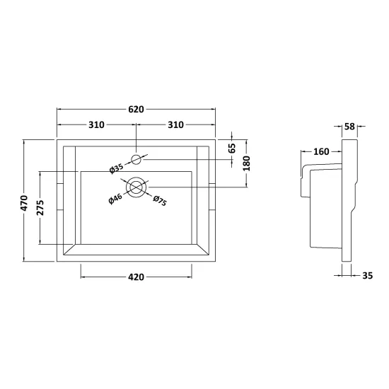 620mm Traditional Basin 1 Tap Hole