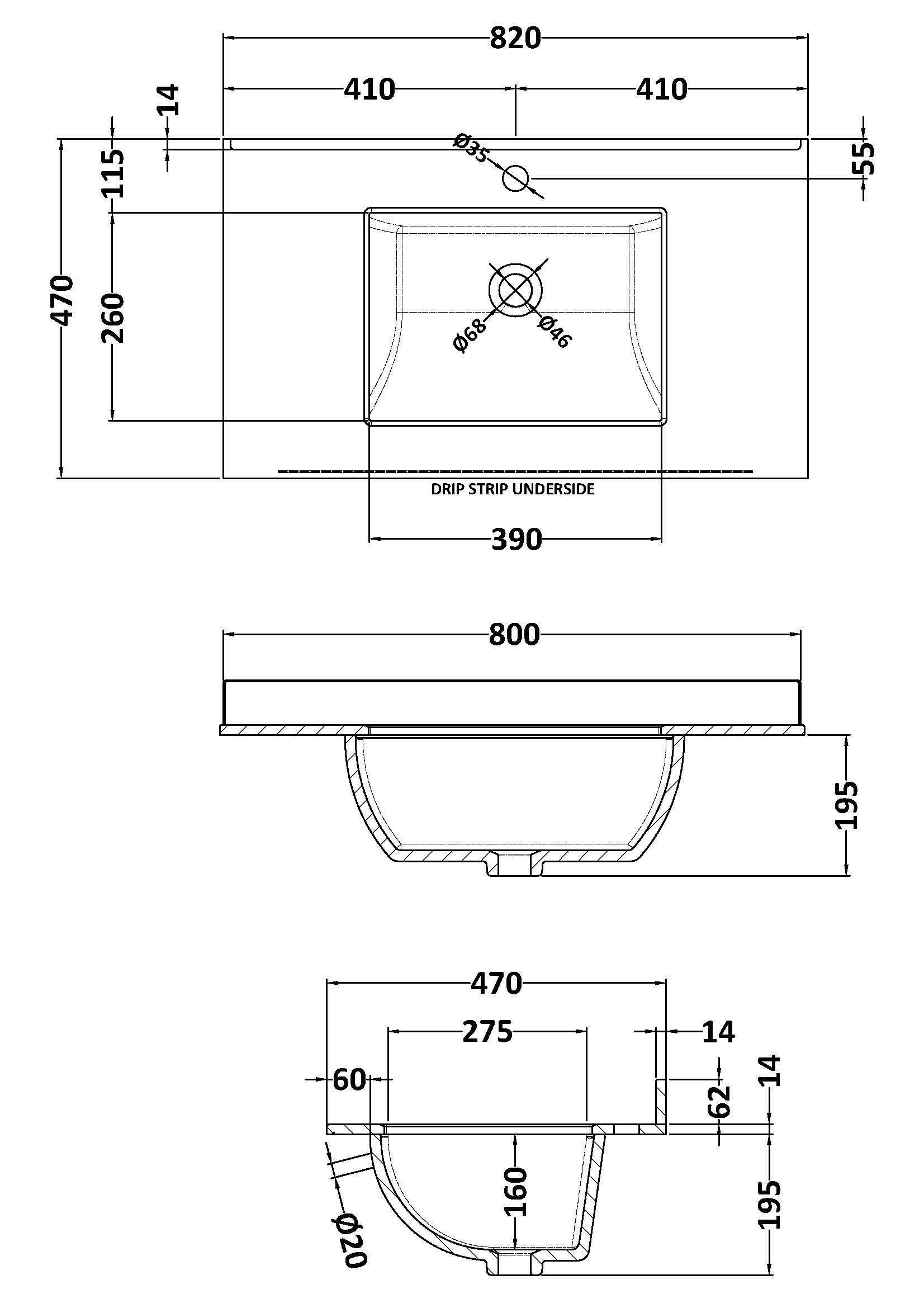 Nuie Lux 800mm Single Bowl Marble Top 1TH - White