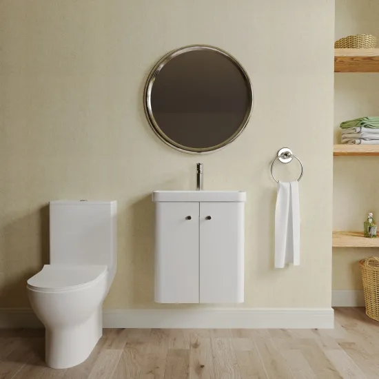 Nuie Core 500mm Wall Hung Vanity Unit with Toilet, Tap, Soft Close Seat & Waste