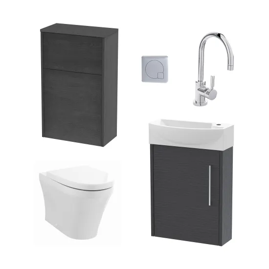 Hudson Reed Juno Wall Hung 440mm WC & Tap - Graphite Grey