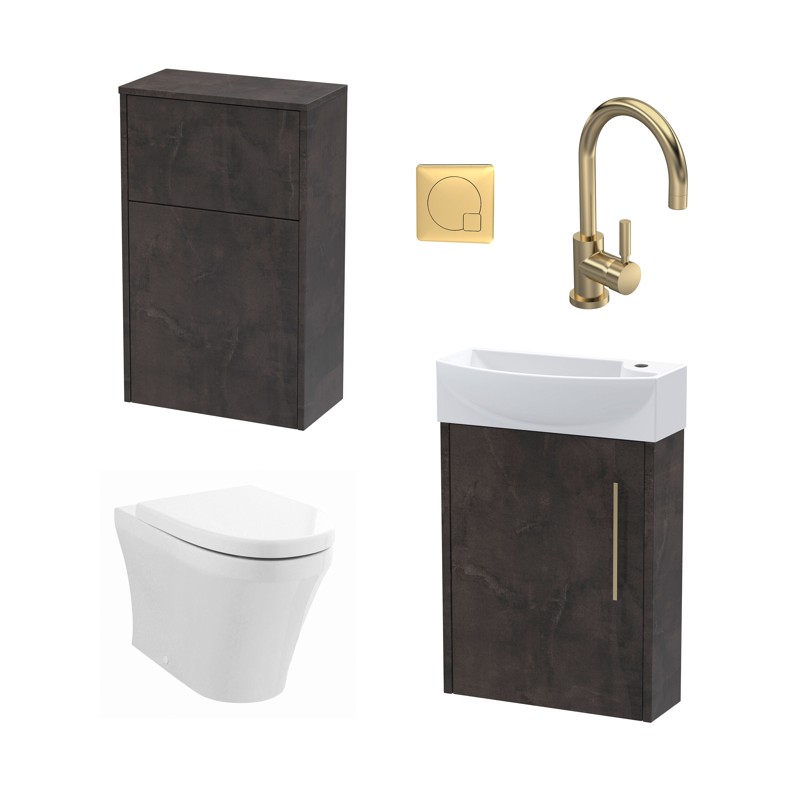 Nuie 440mm Metallic Slate Wall Hung Cloakroom Vanity & Toilet Unit With Tap, Soft Close Seat, Cistern & Flush Plate
