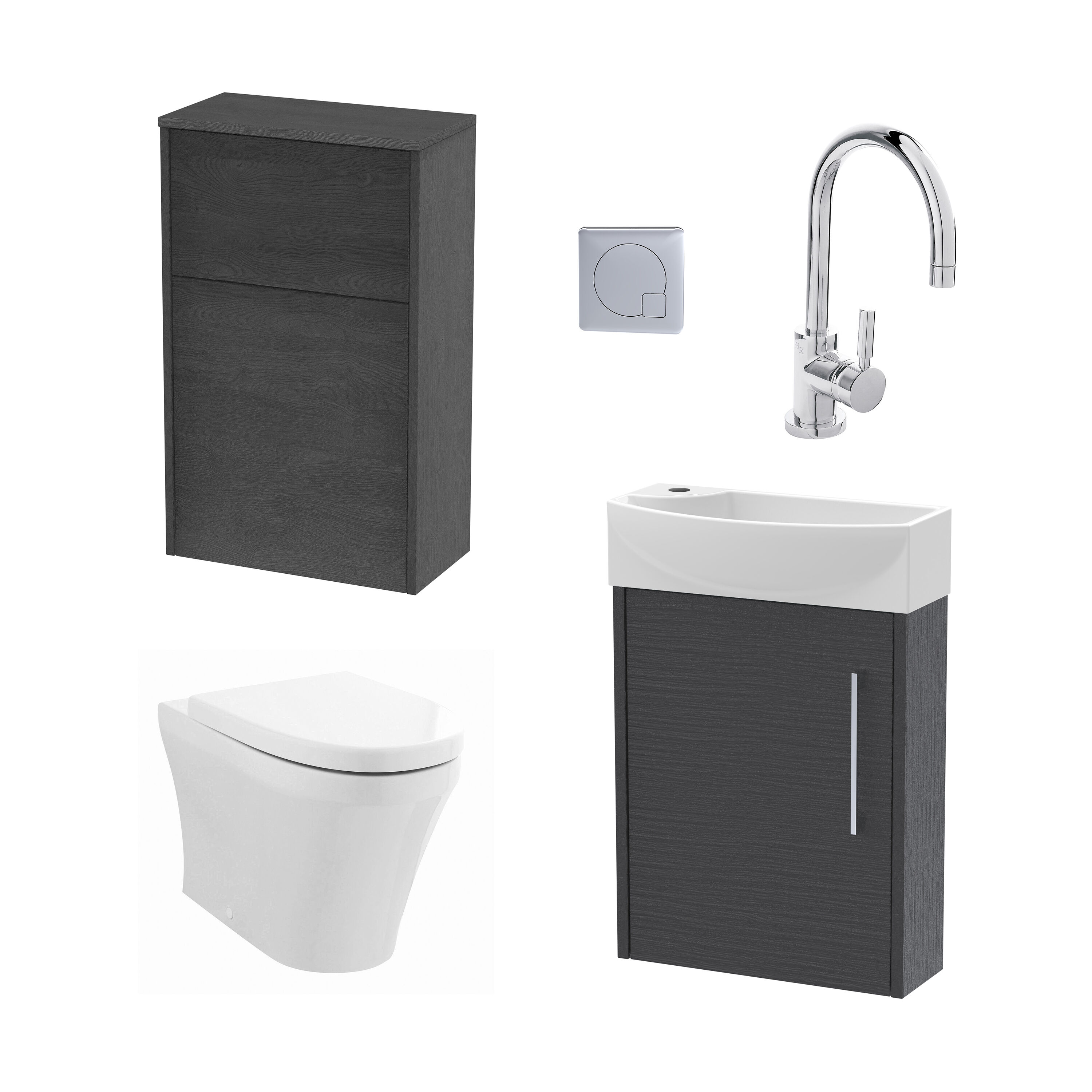 Hudson Reed Juno Wall Hung 440mm WC & Tap - Graphite Grey