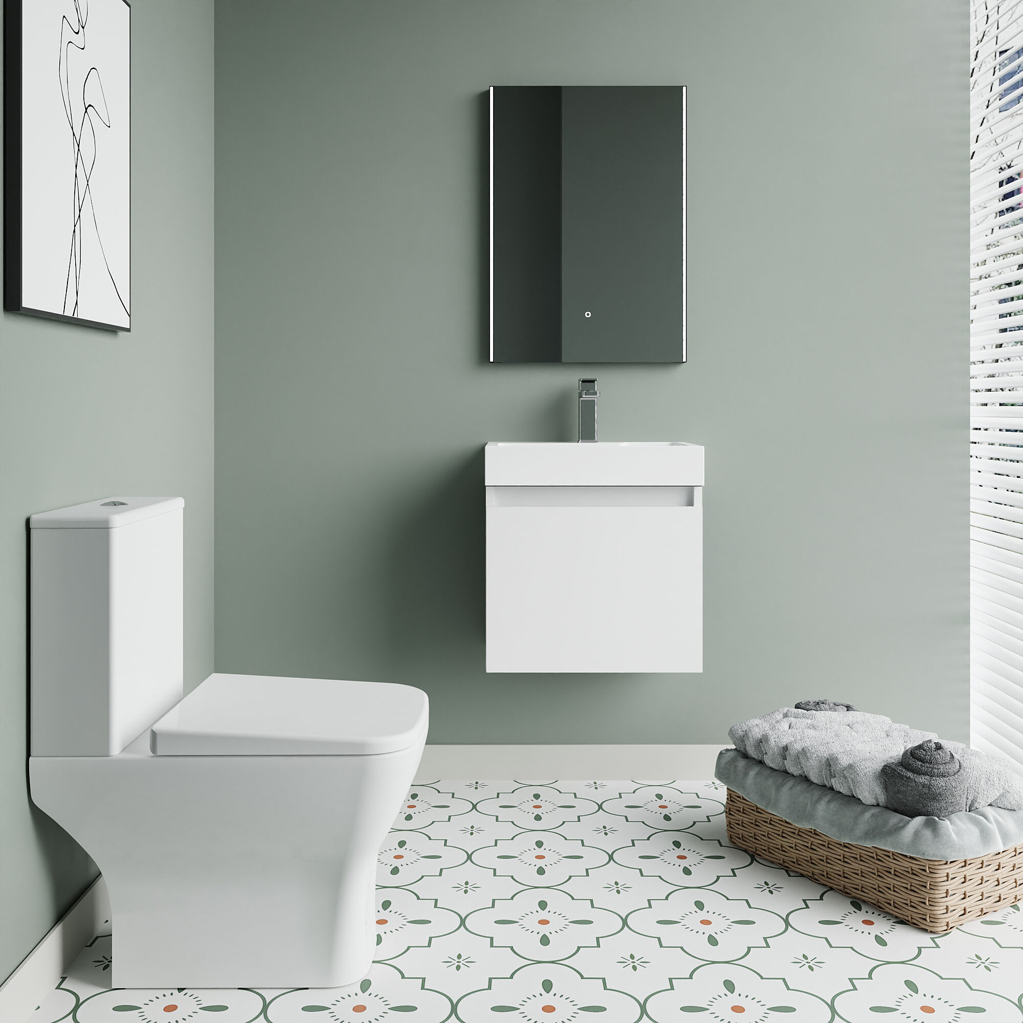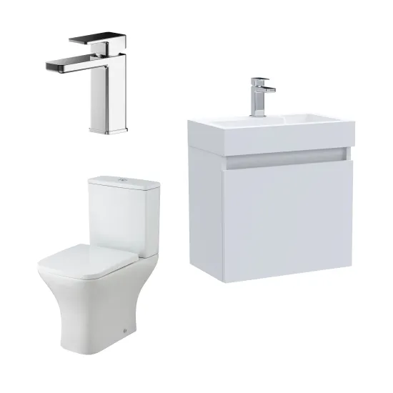 Nuie Merit Slimline Wall Hung 500mm Unit WC & Tap - Gloss White