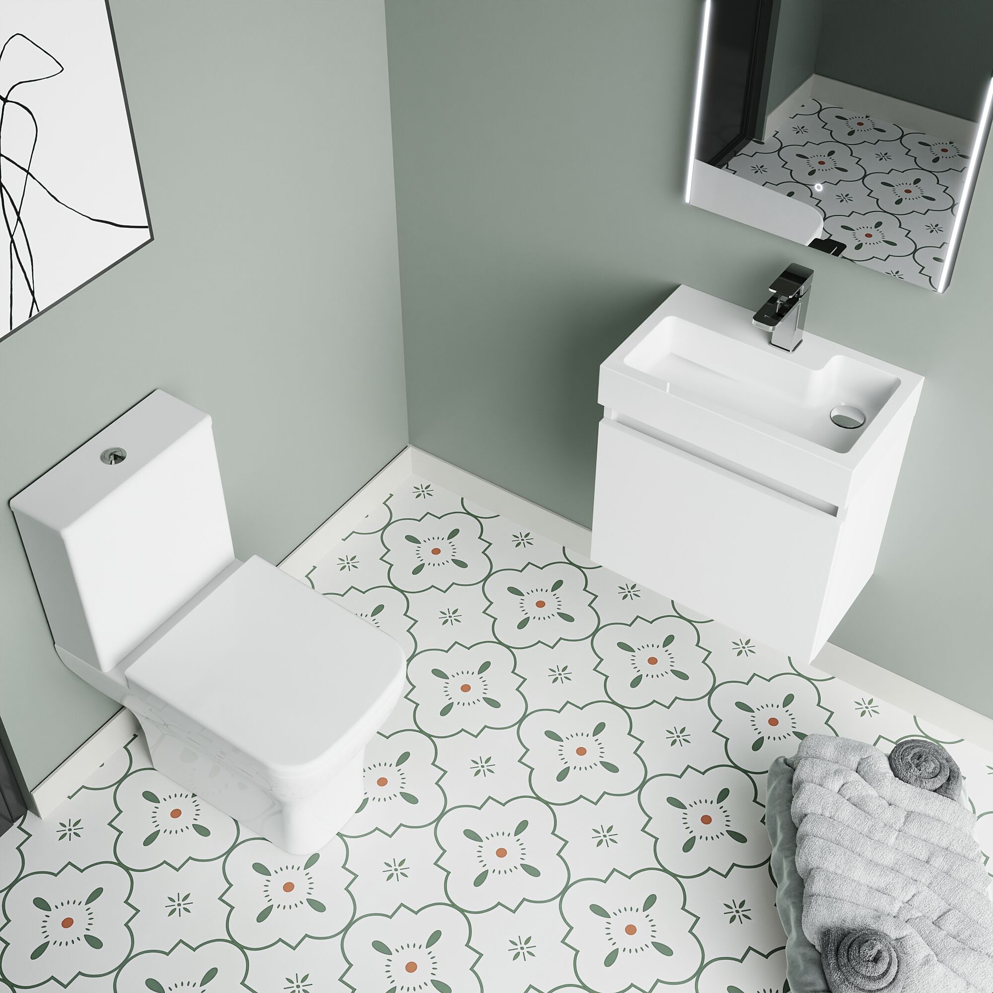 Supplied with high quality polymarble basin, rimless pan, cistern and soft close seat