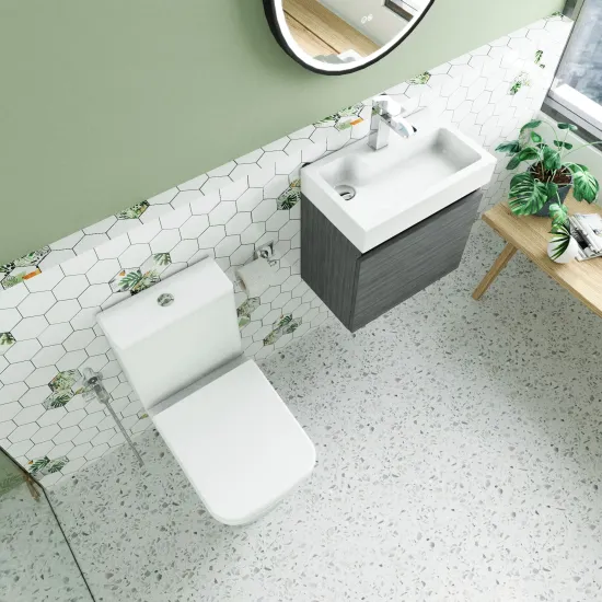 Nuie Merit Wall Hung 500mm Unit WC & Tap - Anthracite Woodgrain