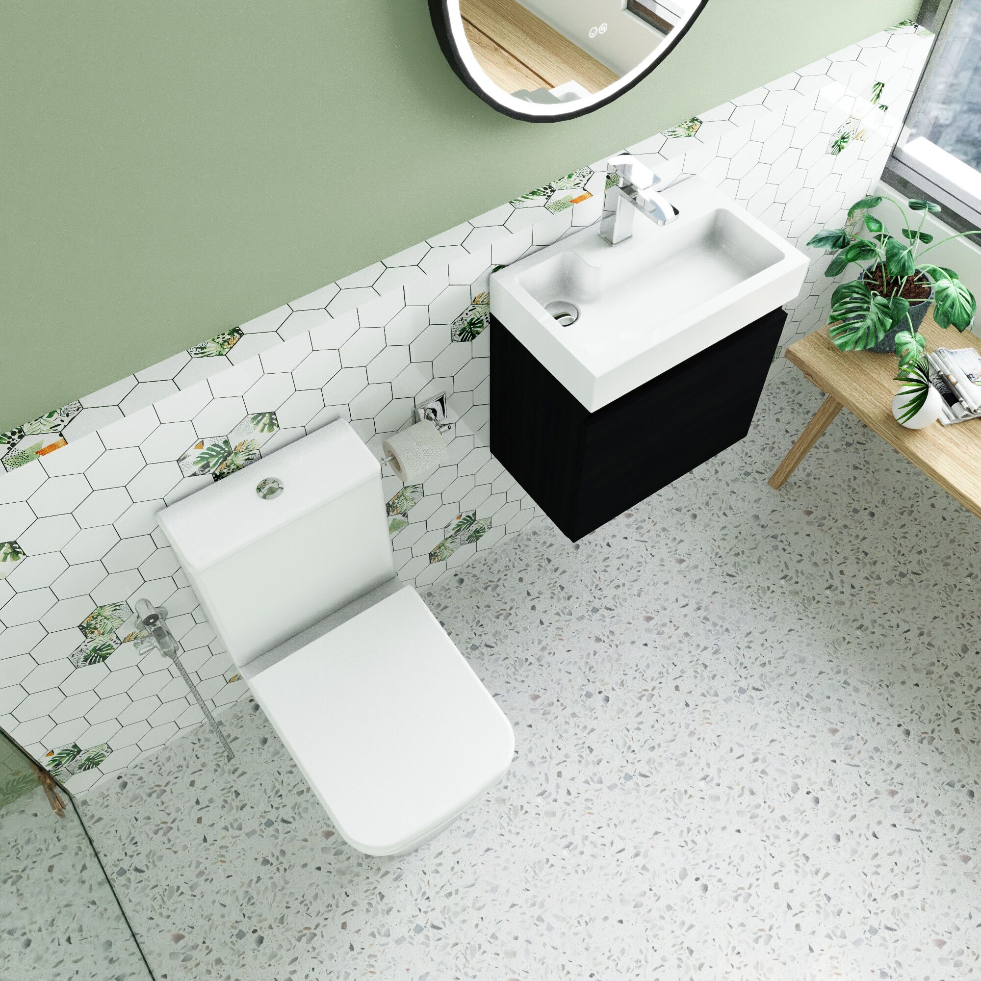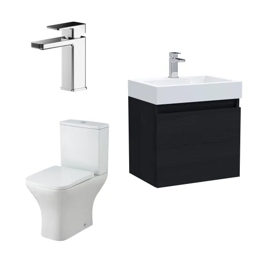 Nuie Merit Wall Hung 500mm Unit WC & Tap - Charcoal Black