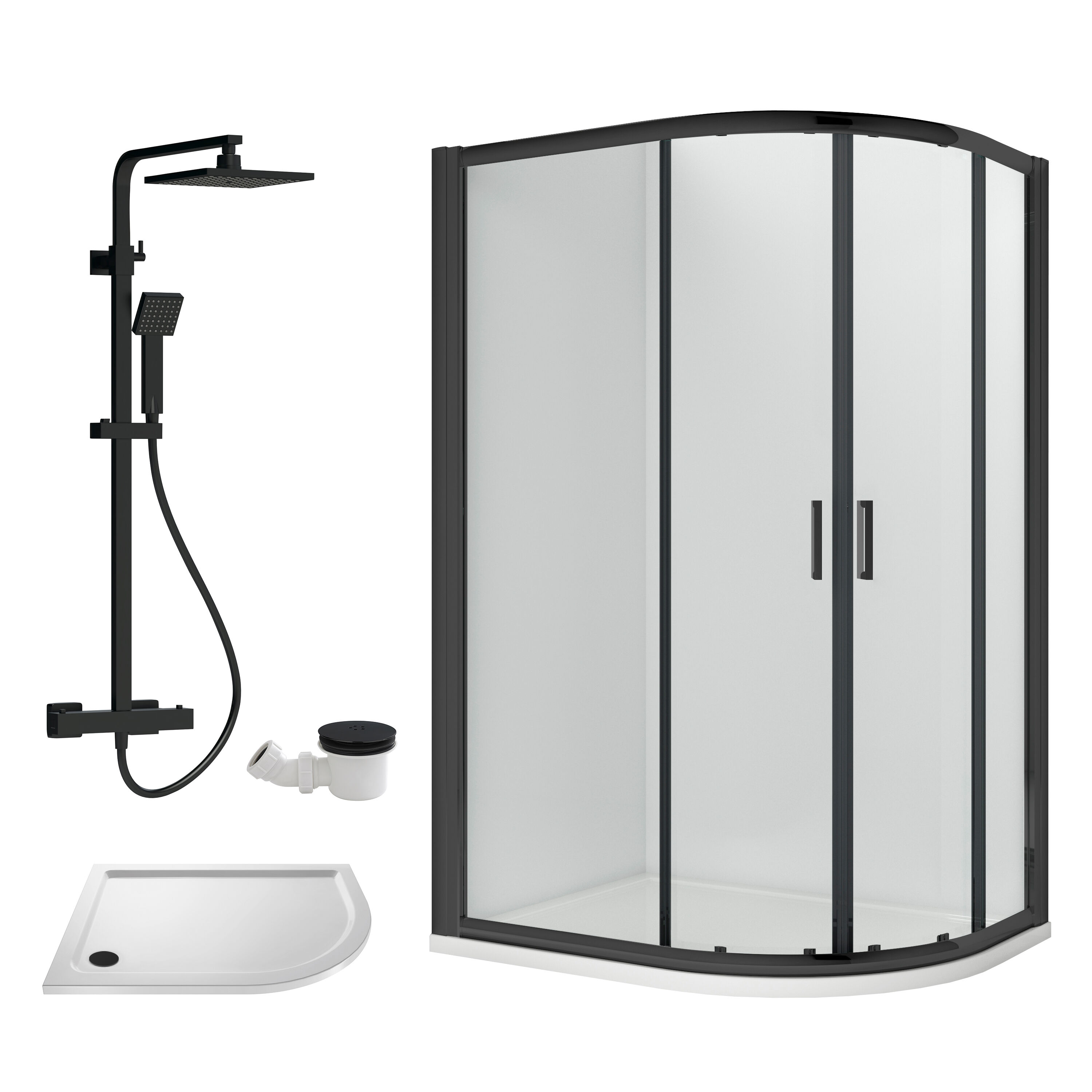 Nuie 1000x800 Right Hand Black Offset Quadrant Shower Kit Including Waste