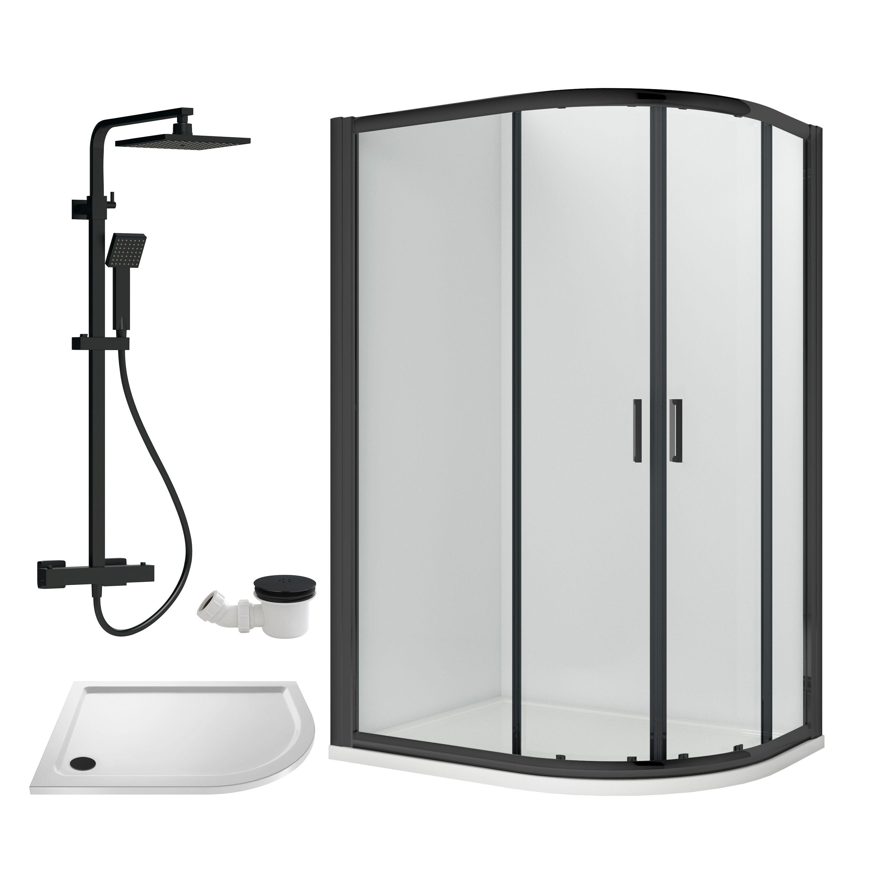 Nuie 1200x800 Matt Black Right Hand Offset Quadrant Shower Kit With Tray & Waste