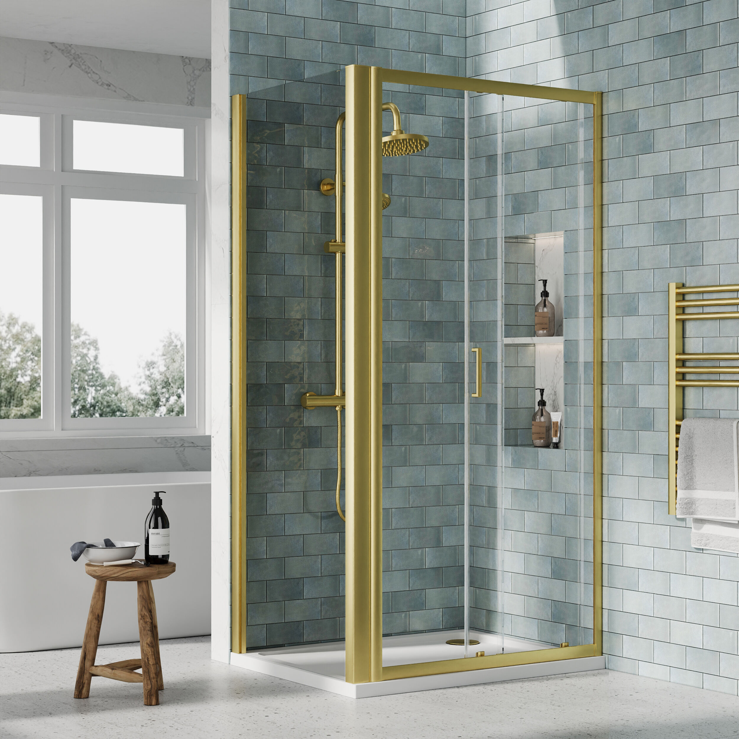 Nuie 1000x760mm Brushed Brass Sliding Door Shower Enclosure Including Tray