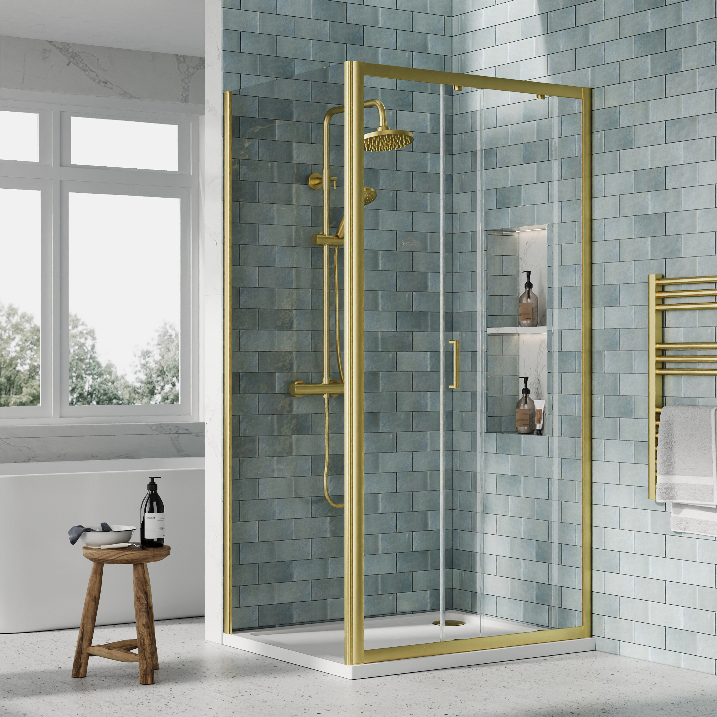 Nuie 1000x800x1900mm Brushed Brass Shower Enclosure With Tray