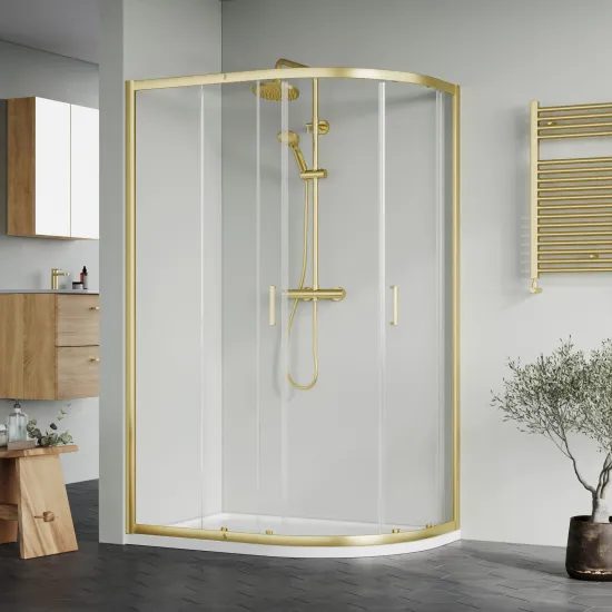 Nuie 1200x800mm Offset Quadrant Left Hand Brushed Brass Shower Enclosure With Tray