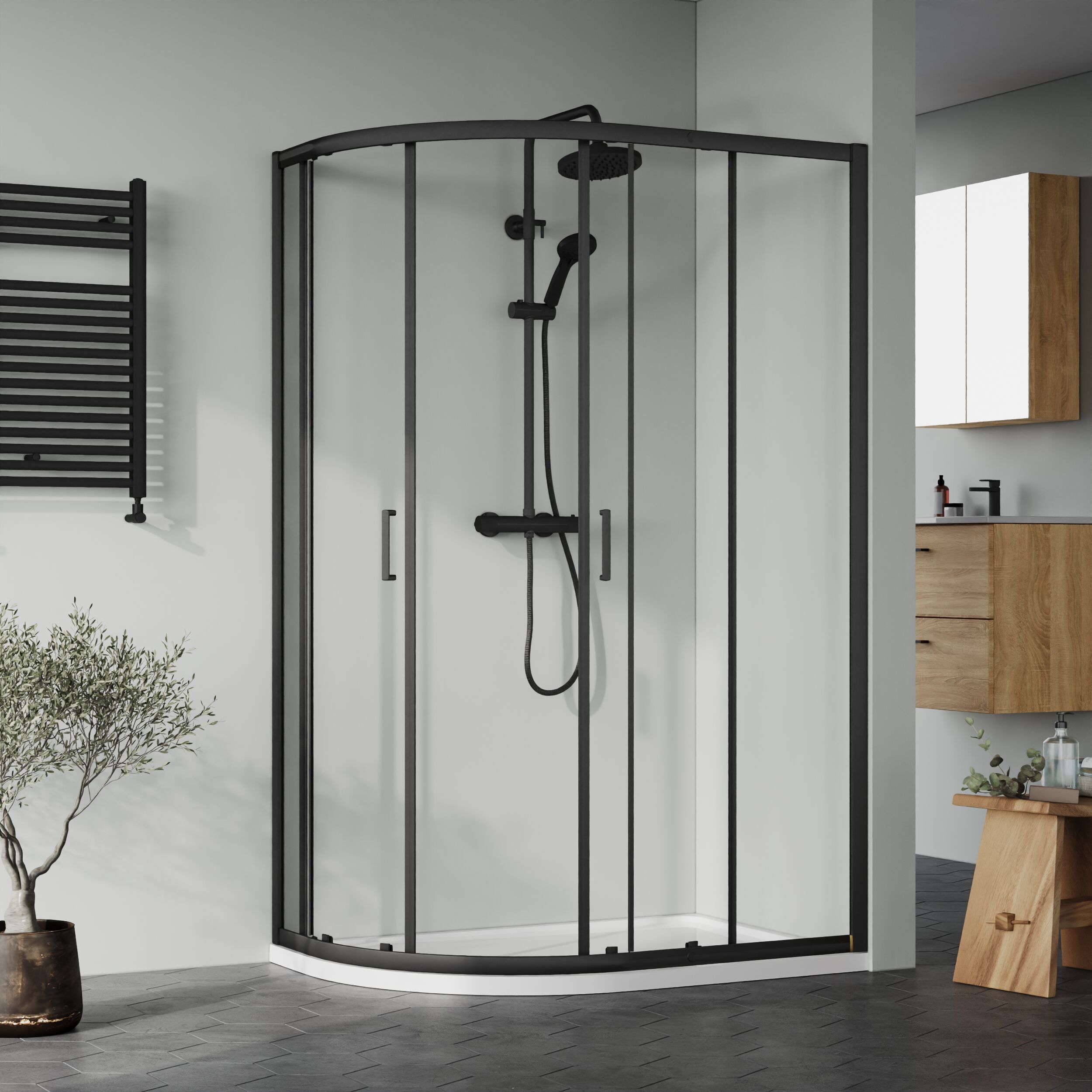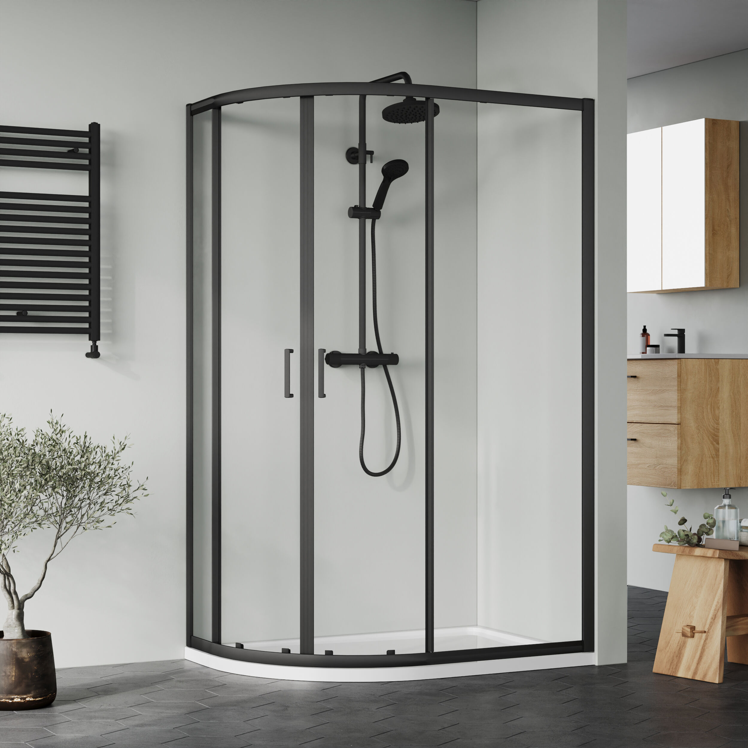 Nuie Easyfit 1200x800mm Matt Black Right Hand Offset Quadrant Shower Enclosure & Tray