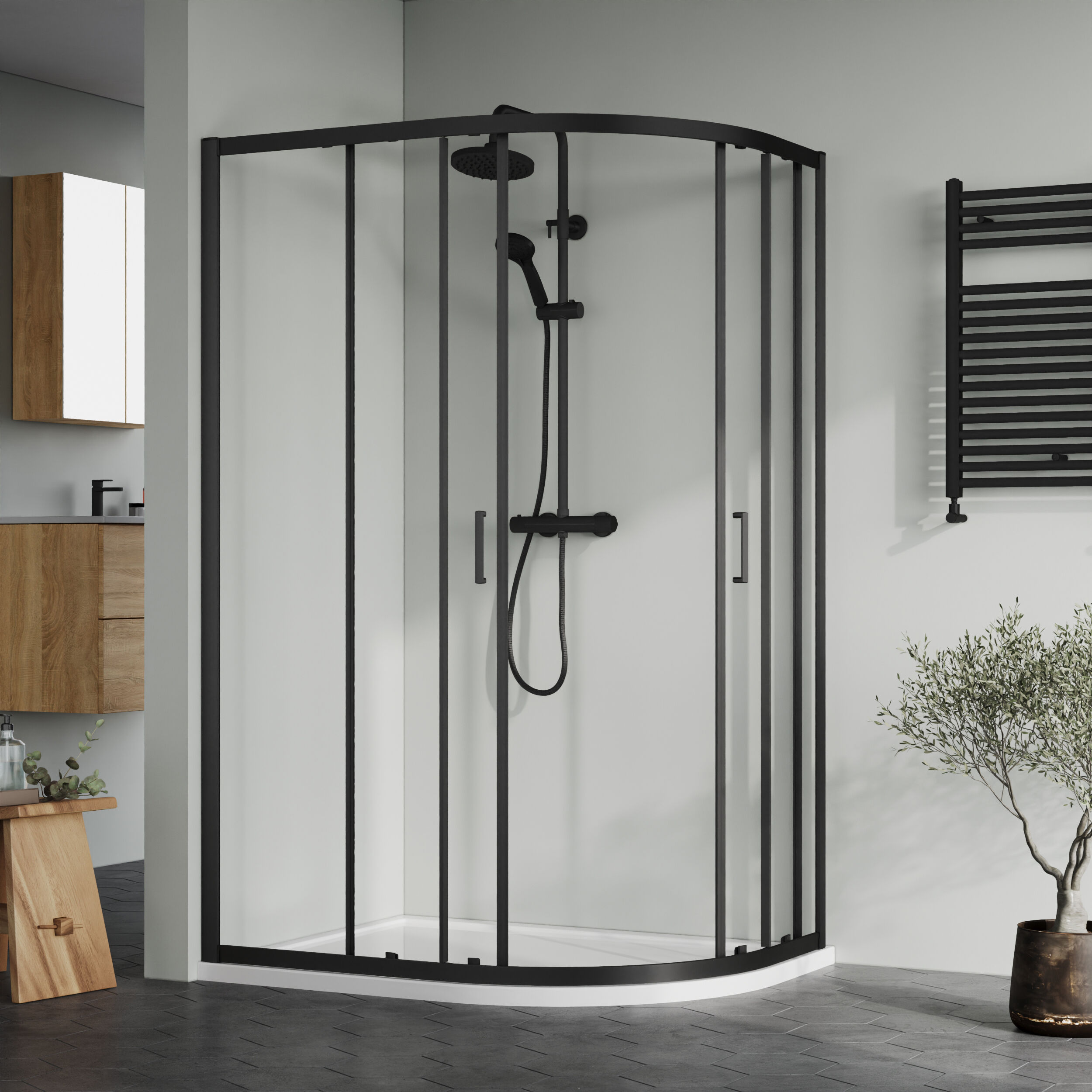 Nuie 1200x900x1900mm Offset Quadrant Left Hand Matt Black Shower Enclosure Including Tray