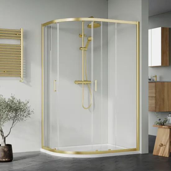 Nuie 1200x900x1900mm Brushed Brass Right Hand Offset Quadrant Shower Enclosure With Tray