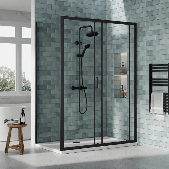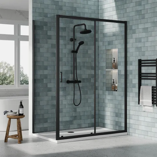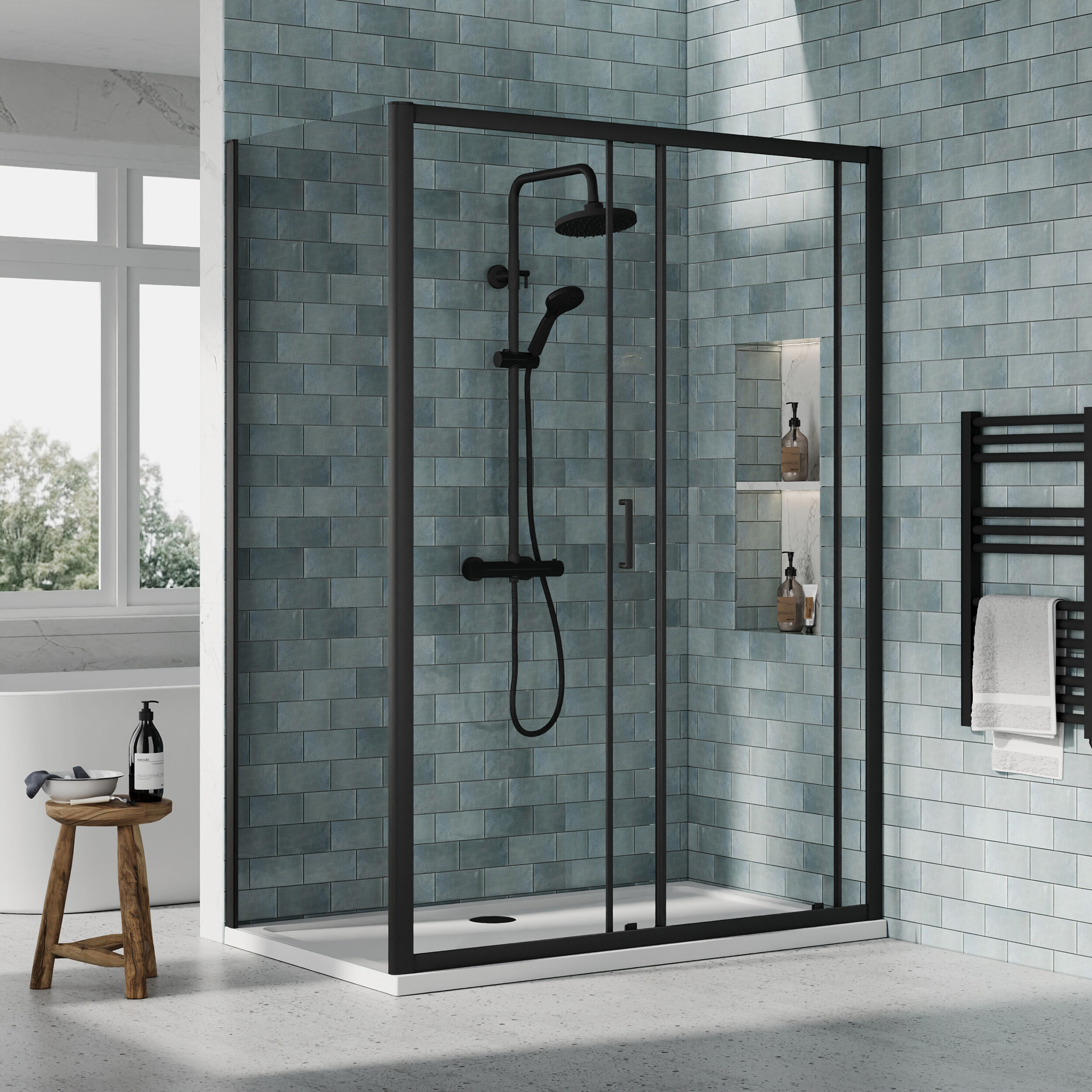 Nuie 1400x800mm Matt Black Sliding Shower Enclosure With Tray