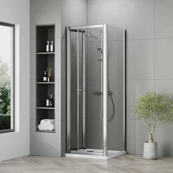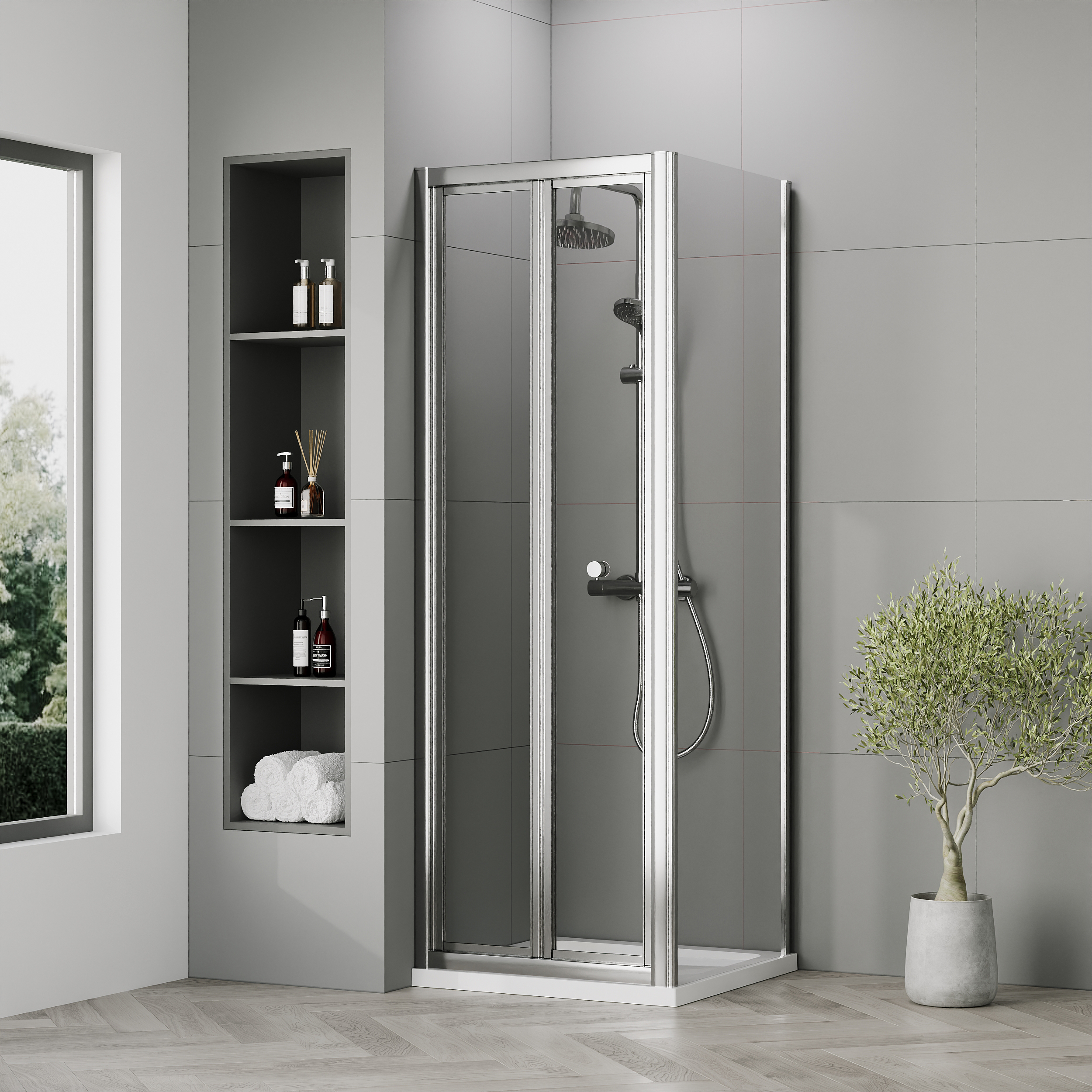 Nuie 700x700mm Bi-Fold Shower Enclosure With Side Panel & Tray