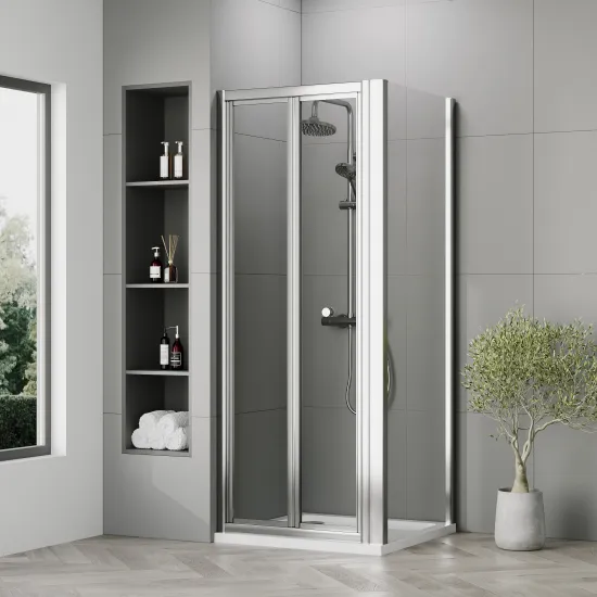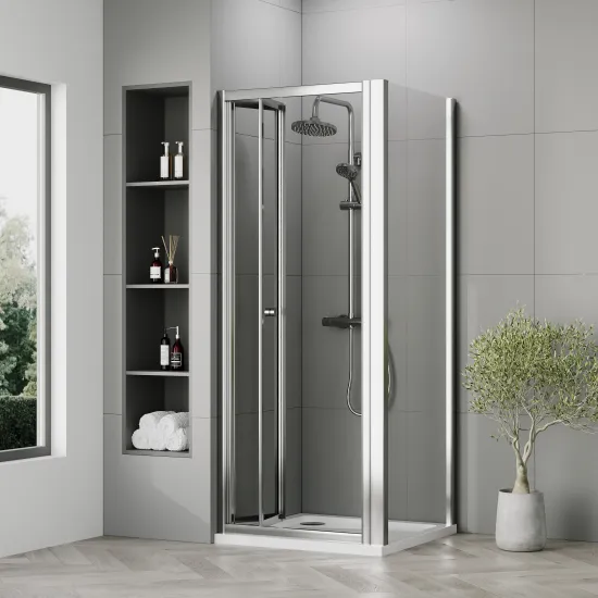 Nuie 760x760mm Bi-Fold Shower Enclosure With Tray & Side Panel