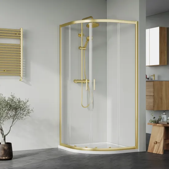 Nuie 900x900mm Brushed Brass Quadrant Shower Enclosure and Tray