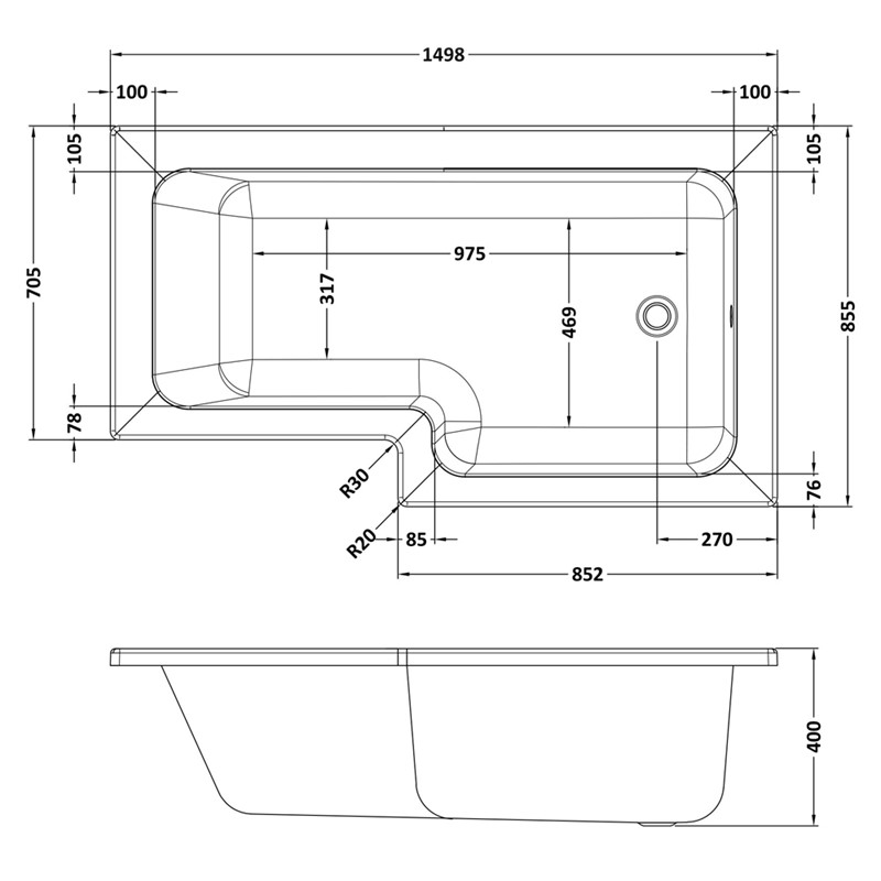 P Shaped Shower Baths