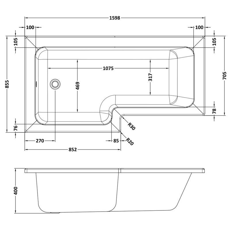 1600mm Left Handed L-Bath & Side Panel