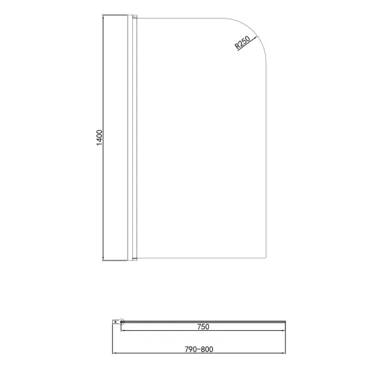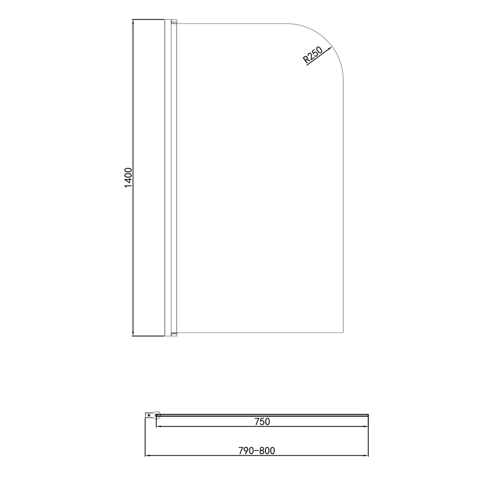 Aquadart Venturi 6+ Curved Bath screen 800 x 1400mm No Rail