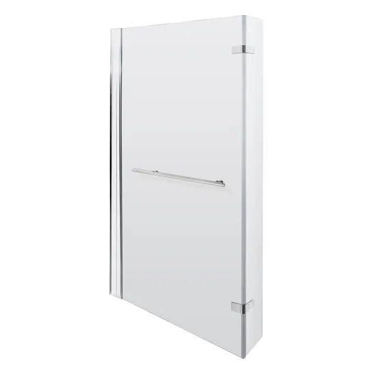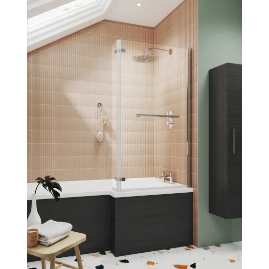 Expertly crafted by Synergy, the l-shaped bath screen hinged with rail embodies modern sophistication and exceptional craftsmanship.