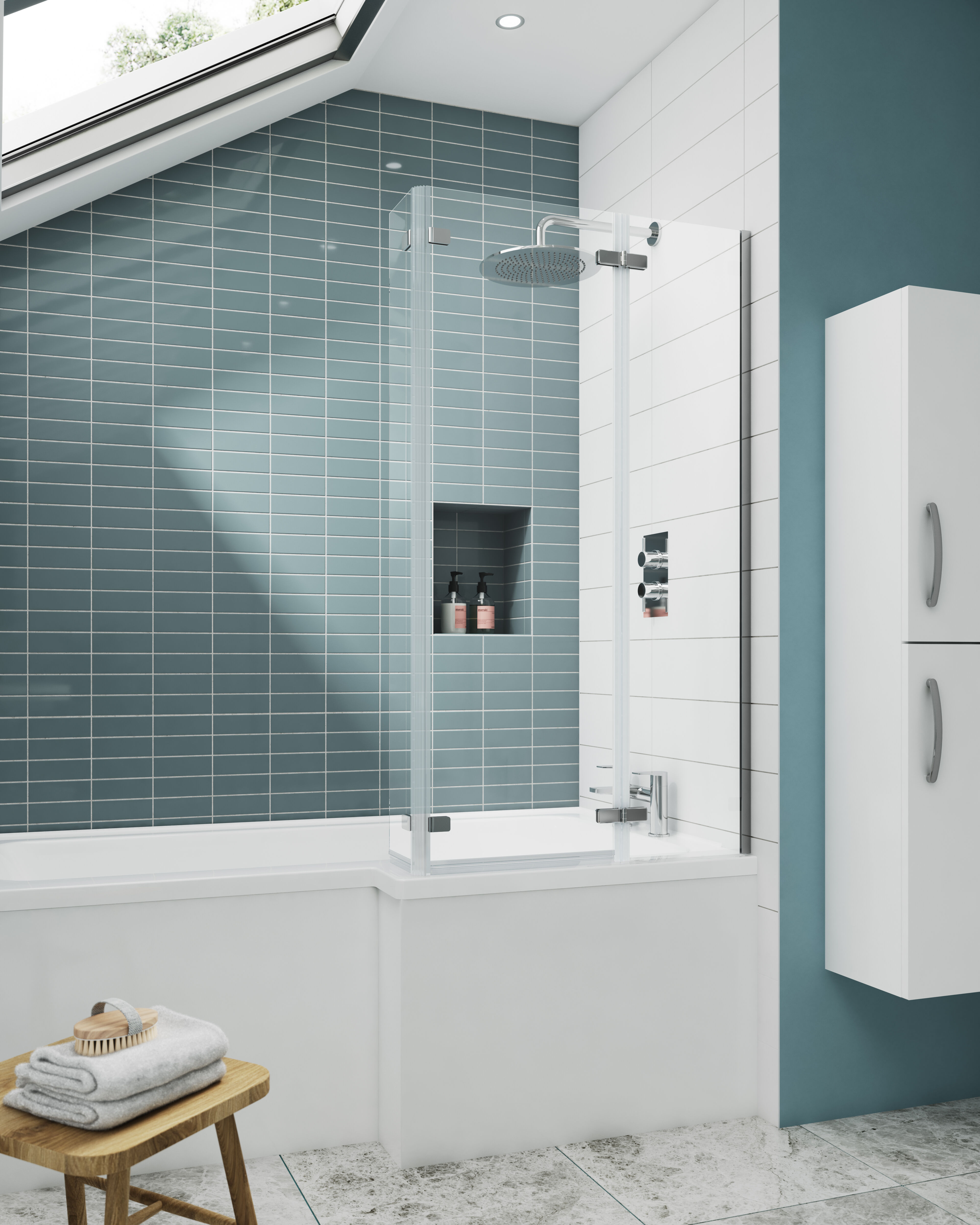 Suitable for use with square shower baths.