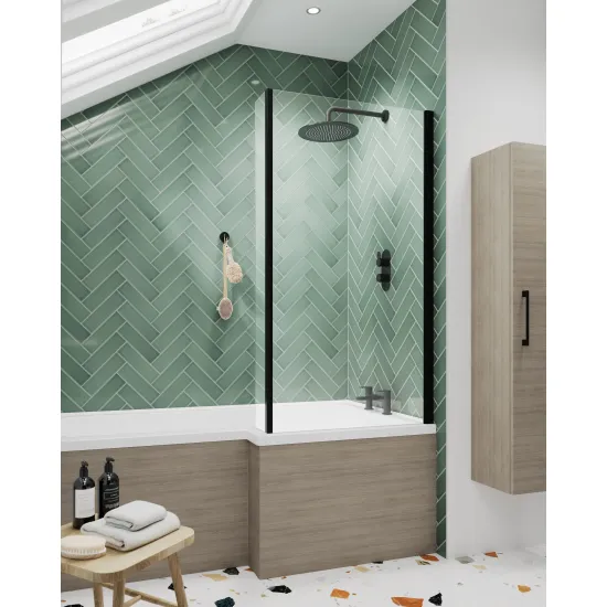 Synergy Square Bath Screen With Fixed Return - Matt Black