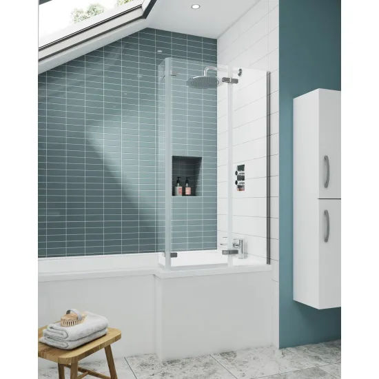 nuie Ella Screens L-Shaped Hinged Bath Screen 5mm - Chrome