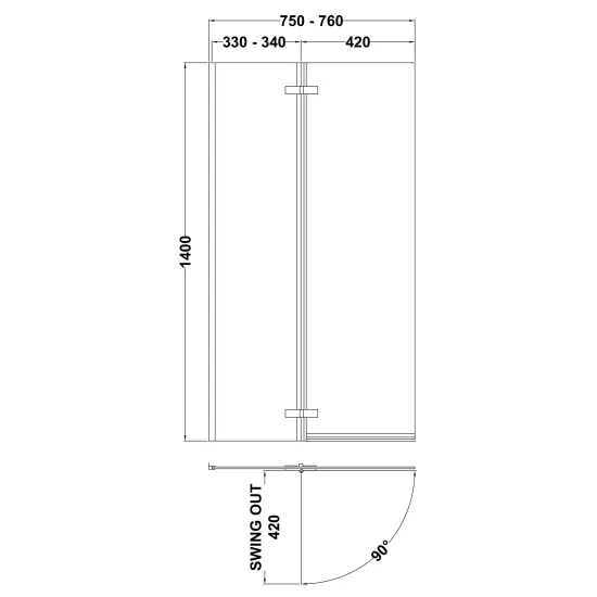 L-Shaped Bath Screen Hinged With Rail