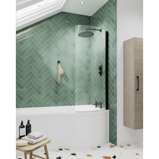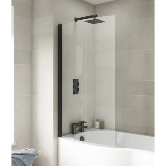nuie P-Bath Curved Hinged Shower Bath Screen 6mm - Matt Black
