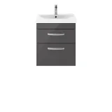 Nuie Athena 500mm Gloss Grey 2 Drawer Wall Hung Vanity Unit With Basin