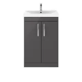 Nuie Athena 600mm Floor Standing 2 Door Vanity Unit With 1 Tap Hole Basin