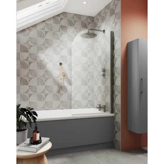 nuie Round Bath Screen - 6mm - Brushed Pewter