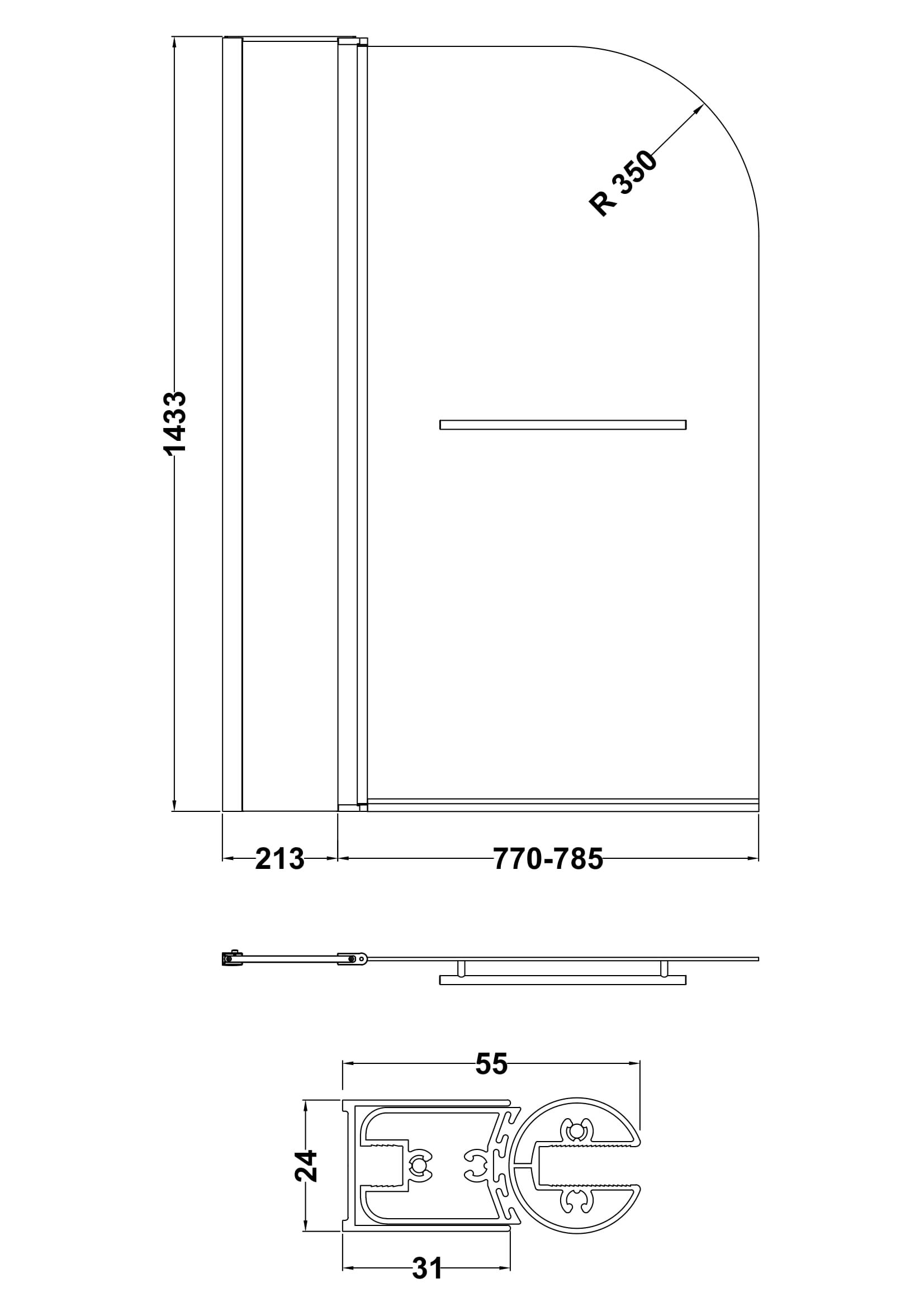 nuie Bath Screens Round Bath Screen Fixed Panel & Rail 6mm - Polished Chrome