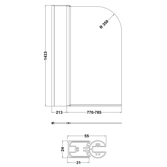 nuie Bath Screens Round Bath Screen With Fixed Panel 6mm - Polished Chrome