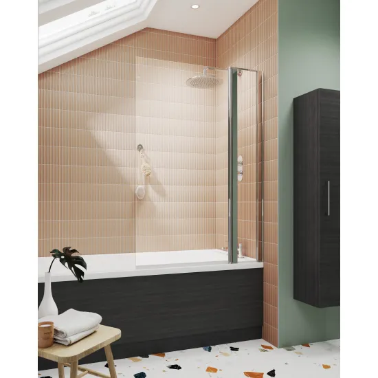 nuie Bath Screens Square Bath Screen With Fixed Panel 6mm - Polished Chrome