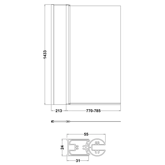 Nuie 790mm Semi-Frameless Chrome Bath Screen